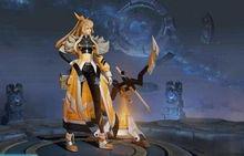 “幻影之灵”的配色非常独特,以蓝色和紫色为主色调,搭配金色和银色的点缀,给人一种梦幻般的感觉。伽罗的服装采用了薄纱材质,轻盈飘逸,仿佛随时都会随风飘起。